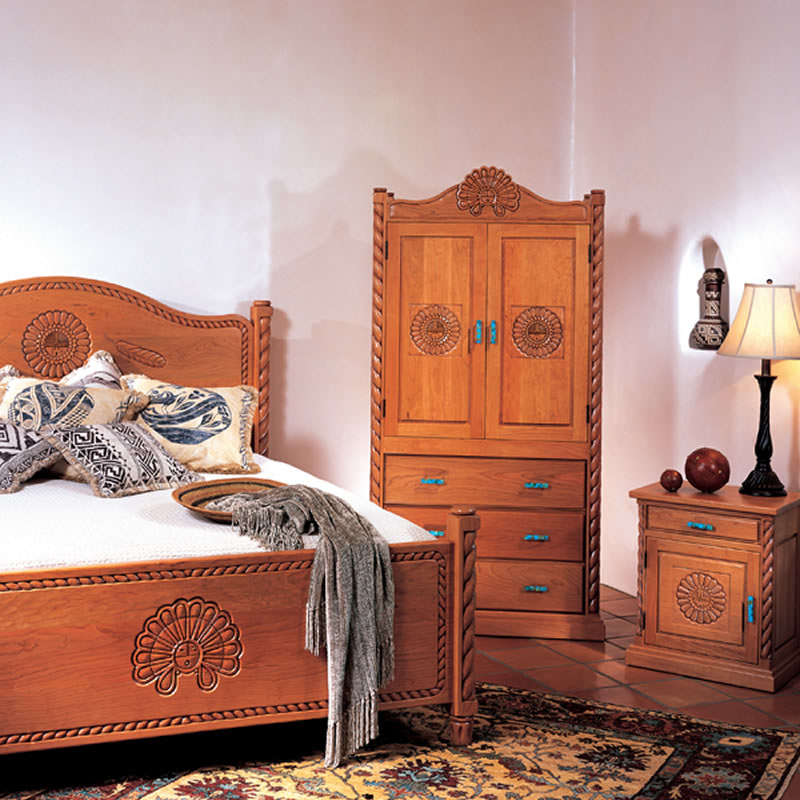 Sun Kachina King Bed: 61 1/2″ high x 82″ wide x 87″ long